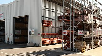 Le nouveau hall de rayonnages pour marchandises en bois permet des processus logistiques nettement plus efficaces sur le site BAUKING à Lorup. Les clients peuvent avoir accès à une plus grande offre de produits ; ainsi, il est possible d’entreposer par exemple sans problème des articles jusqu’à une longueur de 13 mètres. L’entreposage centralisé de toutes les marchandises en bois dans un système de rayonnages cantilever permet aux clients de recevoir les marchandises souhaitées, dans un laps de temps plus court.