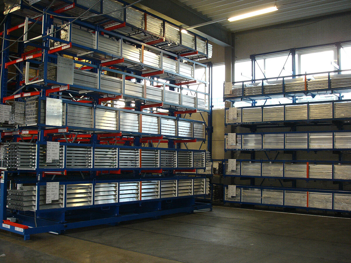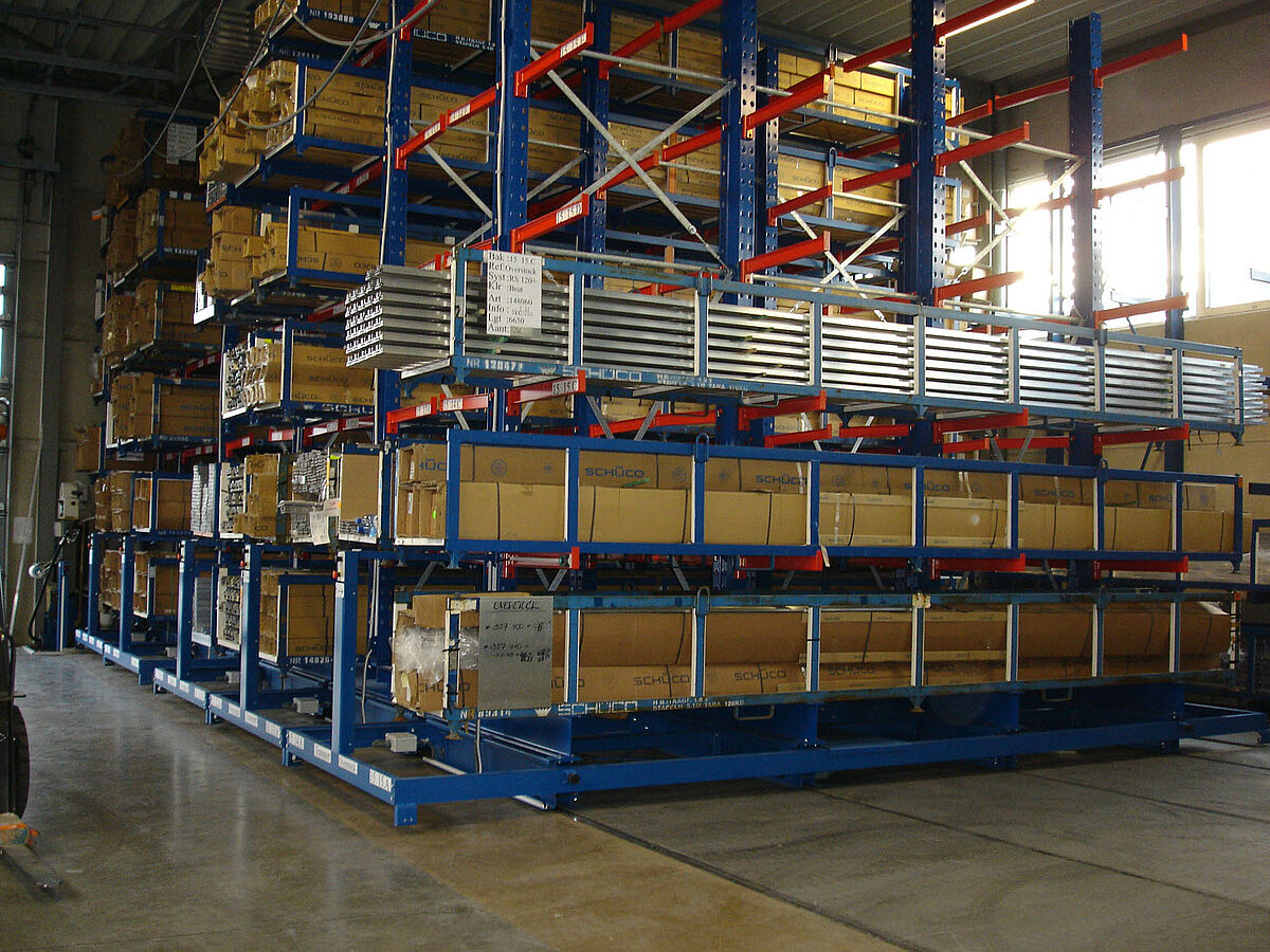 La capacité des rayonnages en porte-à-faux déjà présents contre le mur de l’entrepôt a été rapidement atteinte, d’où la nécessité d’augmenter le volume de stockage. La surface au sol du dépôt de stockage n’est toutefois que de 9 x 23 mètres. Chaque profilé ne pouvant être préparé que manuellement, l’enjeu consistait à créer une grande surface de stockage malgré une hauteur de rayonnage relativement faible. Il était également primordial de pouvoir continuer à utiliser les rayonnages existant déjà.