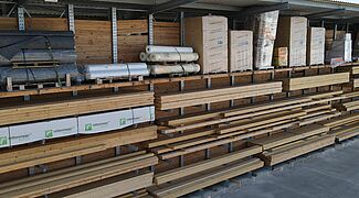 Nos clients attendent en outre de plus en plus de matériaux de construction qu'ils soient stockés à l'abri des intempéries, explique Thomas Walter. C'est ce que permettent entre autres les halls de rayonnage qu'OHRA a construits sur les deux sites de la société. Les rayonnages cantilever servent en même temps de structure porteuse pour le toit et les murs - ce qui est plus économique et plus rapide à réaliser que la construction d'un hall séparé dans lequel les rayonnages sont ensuite placés. OHRA a également équipé d'autres rayonnages extérieurs avec un toit intégré. OHRA a également fourni les calculs statiques et la planification nécessaires à l'obtention du permis, ce qui a permis de clore rapidement la procédure.
