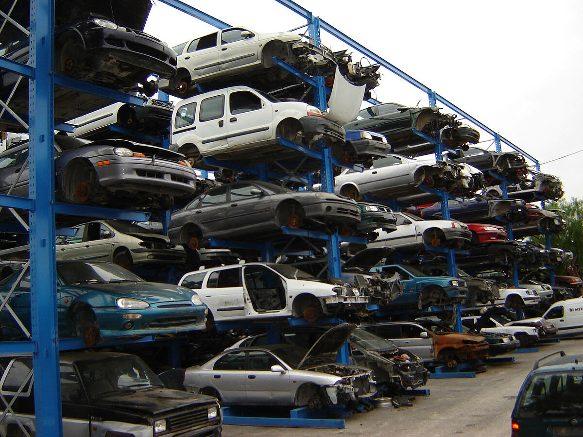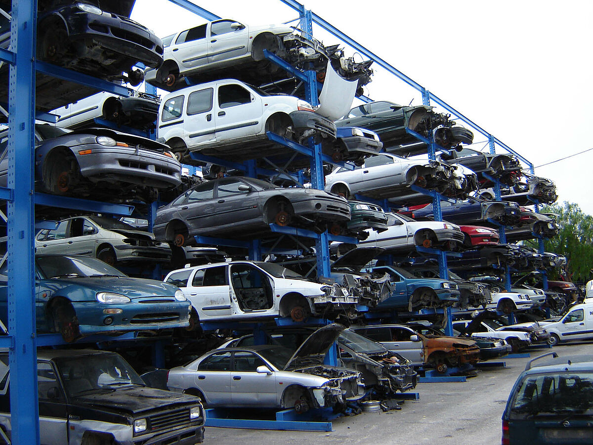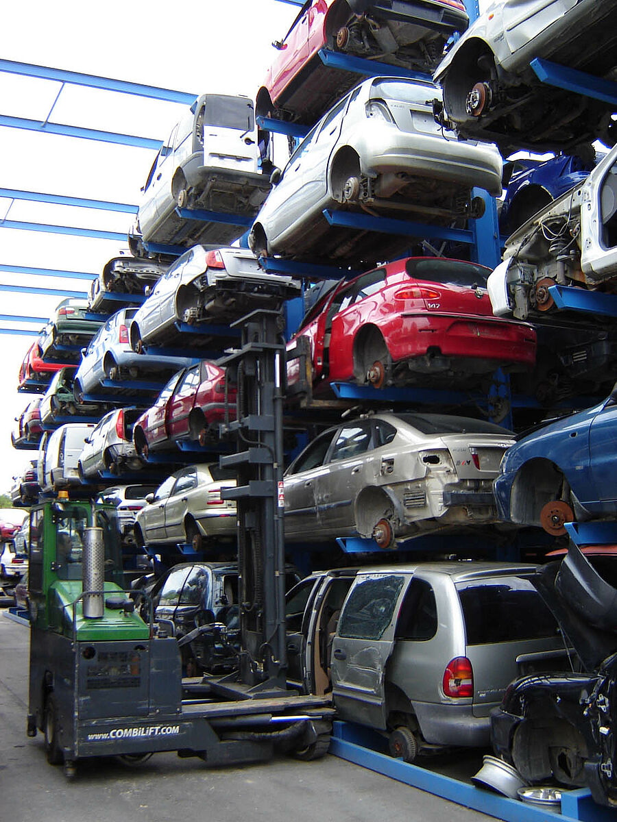 Grâce aux systèmes de rayonnage, chaque véhicule est placé, dès son arrivée dans le centre de recyclage, à un endroit précis qui lui est réservé sur la durée. Ainsi, tous les éléments restent intègres. Si la base de données contient une portière de type « A », il ne fait alors nul doute que celle-ci pourra être récupérée dans un parfait état. L’environnement est ainsi respecté, au même titre que le taux légalement prescrit pour le recyclage et la récupération des véhicules usagés. Pour les entreprises, ceci se traduit également par des répercussions extrêmement positives sur le plan économique. Les pertes en raison de pièces endommagées ou égarées n’ont en effet plus raison d’être.