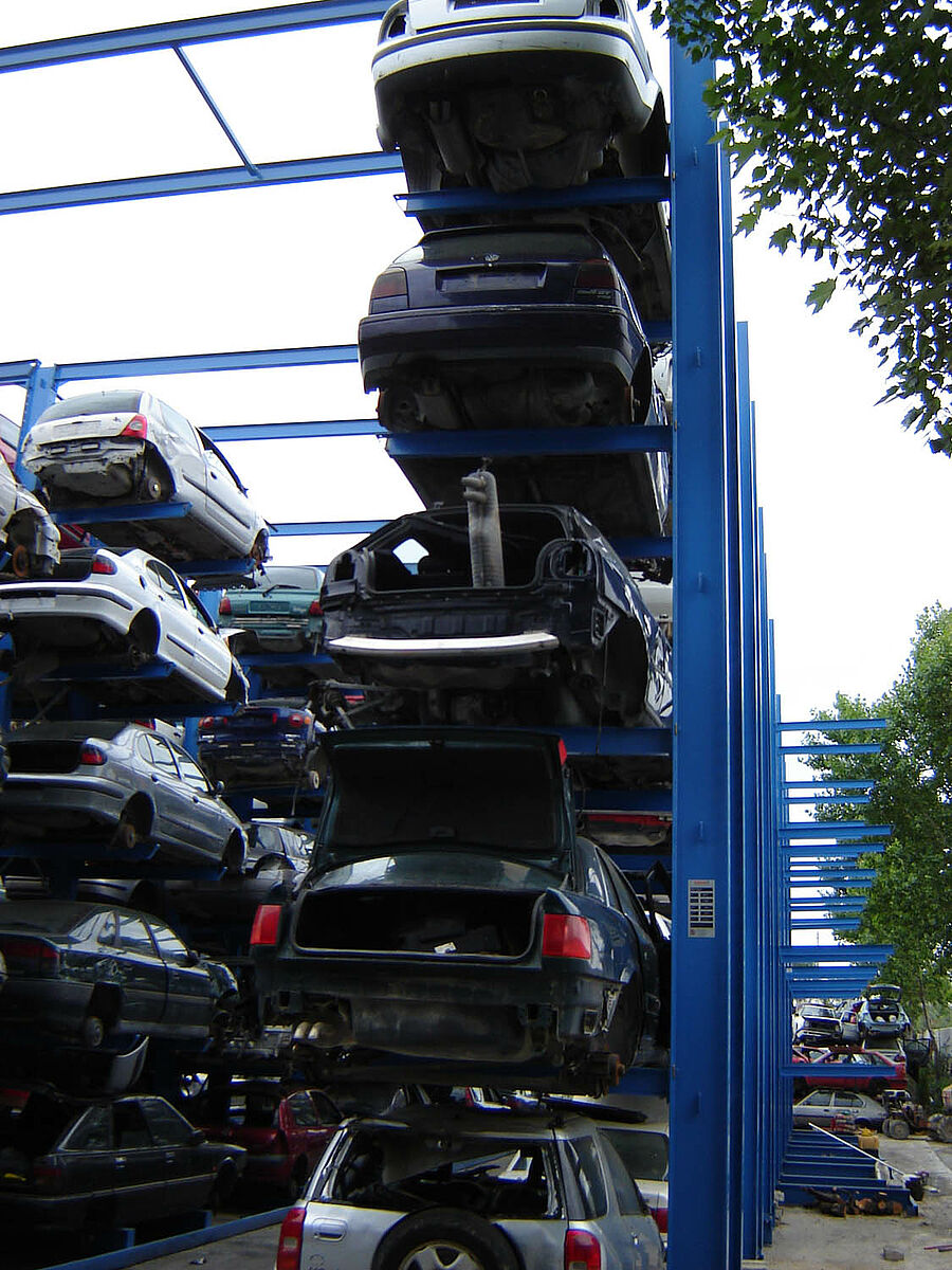 Ces systèmes de rayonnage permettent de stocker et d’identifier les véhicules de manière optimale. Une simple méthode d’enregistrement permet quant à elle d’accéder à tout moment à l'ensemble des véhicules disponibles en magasin. Ils permettent par ailleurs de réduire les manœuvres répétitives et coûteuses de réorganisation et de restructuration indispensables pour permettre l’accès aux autres véhicules stockés. Il en va de même pour les coûts fixes qui contribuent dans une large mesure à l’efficacité et à la compétitivité du centre de recyclage.