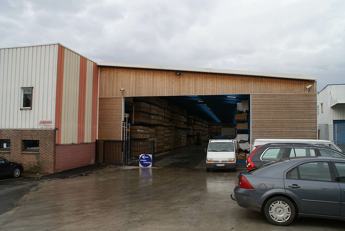 En 2008 notre client souhaitait une surface couverte adossée à son bâtiment principal de stockage de la région Lilloise. Elle devait lui permettre de réaliser le chargement de ses camions sous abri afin de préserver la qualité des produits à charger, majoritairement des panneaux agglomérés, panneaux décors, produits de menuiserie et d'agencement délicats. Cette surface couverte devait également permettre un plus grand confort de travail à ses caristes ; en effet cette zone de préparation de commande et de chargement des camions de livraison était particulièrement exposée aux vents et bien évidemment aux intempéries, le nord de la France n'est pas réputé pour la douceur de son climat. De plus Les caristes travaillent de nuit pour préparer les livraisons de la matinée dans des conditions de faible éclairage la zone étant peu aménagée.