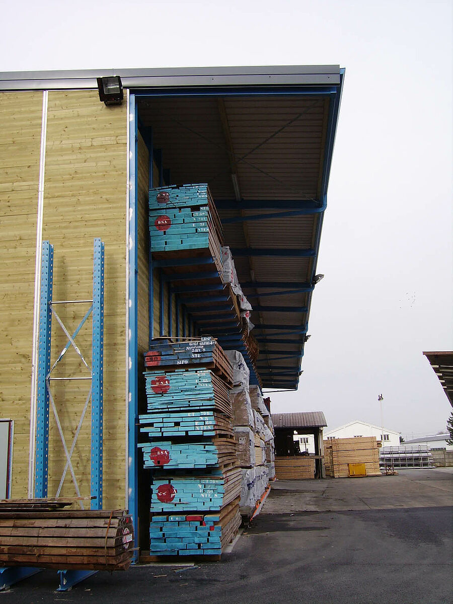 Plusieurs options se présentaient à notre client : construction d'un bâtiment traditionnel, d'une structure souple ou hall autoportant OHRA. Son choix s'est porté sur cette dernière solution, car en plus de répondre au cahier des charges initial, Il augmentait sensiblement sa capacité de stockage de masse sur cantilever, il pouvait créer une zone de stockage en limite de propriété lui permettant de tenir à disposition pour ses clients des produits nécessitant une moindre protection, ces produits étaient tenus habituellement en stock sur un autre site de la société.