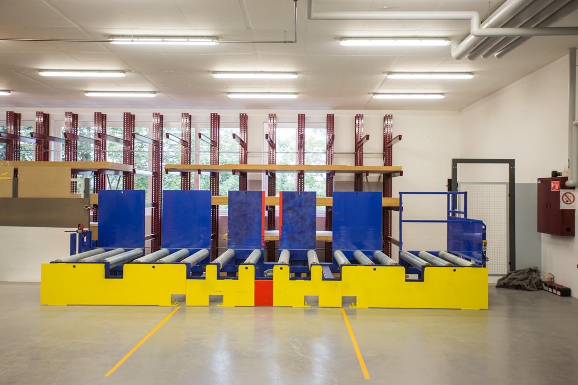 La technique de rayonnage et de stockage a été fournie par OHRA : Le fabricant, dont le siège se situe à Kerpen, en Allemagne, s’est spécialisé dans les systèmes de rayonnage pour le commerce de bois. Il est le principal fournisseur de rayonnages à bras portants du marché européen.