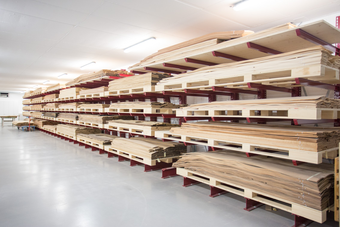 Robert Fehr utilise des systèmes de rayonnage OHRA depuis 20 ans. En plus de l’entrepôt automatique, d’autres zones de stockage, telles que l’entrepôt de bois de placage et un entrepôt extérieur, ont également été équipées de rayonnages à bras portants OHRA.