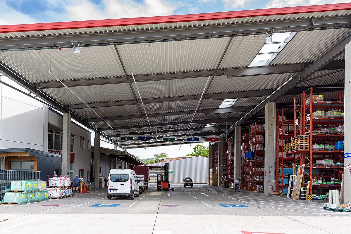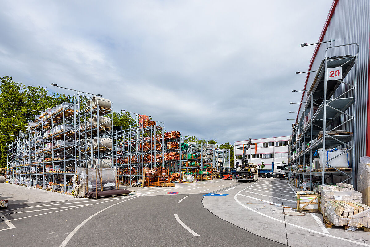 Grâce aux nouveaux systèmes de rayonnages, Götz + Moriz peut désormais offrir à ses clients sur son site de Lörrach une gamme plus diversifiée et conséquente en stock en dégageant plus d'espace de livraison et d'enlèvement. Les zones de chargement et de déchargement couvertes et les temps d'attente plus courts sont d'autres atouts pour le client.