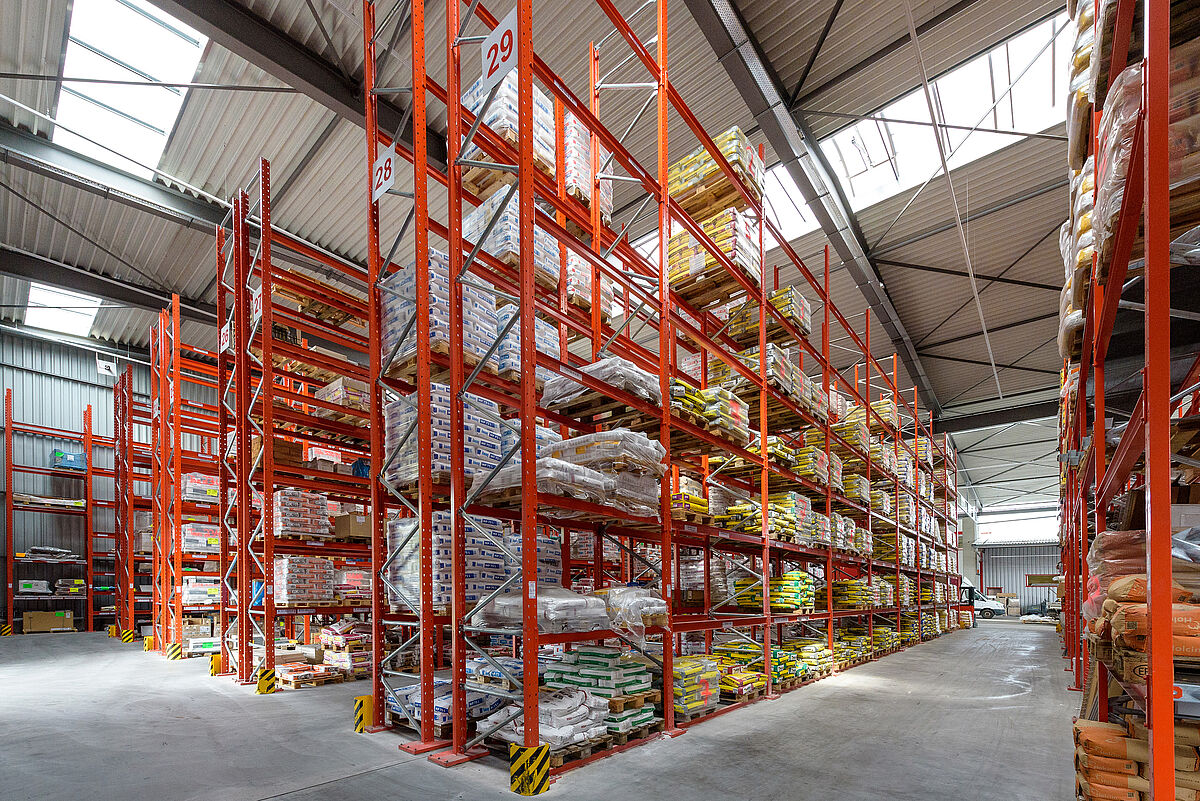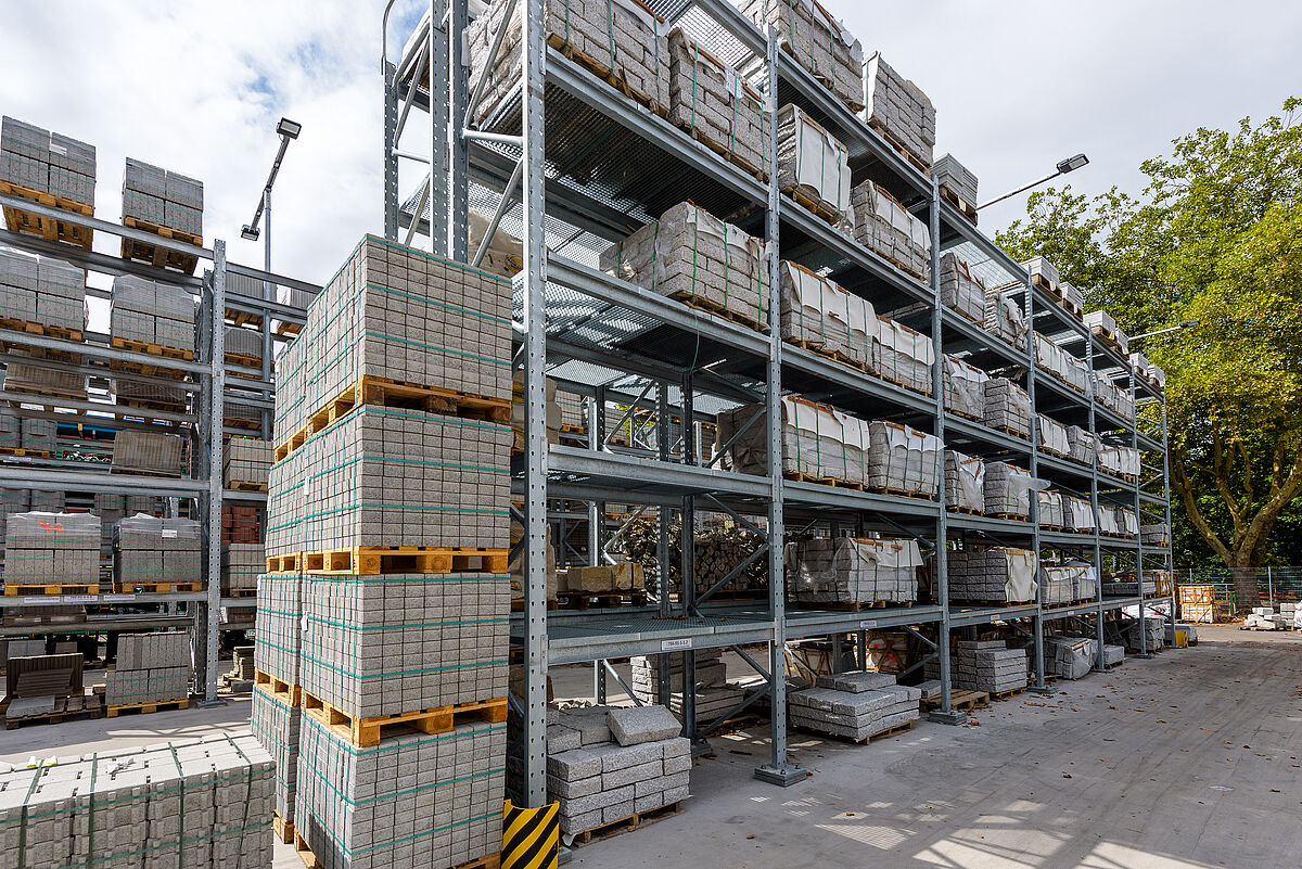 En raison de la position géographique de Lörrach dans une zone sismique de niveau 3, la charpente et les plaques d'appui des nouveaux rayonnages OHRA ont été calculées de manière à supporter en sécurité les charges supplémentaires. Étant donné que tous les éléments porteurs des rayonnages OHRA sont en profilés d'acier laminé à chaud et pas en profilés en tôle, ils présentent par nature une haute capacité de charge. En outre, les montants ne cèdent ni sous une charge latérale, ni au contact d'un chariot élévateur. Vu que plusieurs rangées de rayonnages se trouvent en pente à l'extérieur, les experts d'OHRA ont conçu des rayonnages à palettes en plus, où les montants sont montés en escaliers. Des entretoises spéciales entre le pied du rayonnage et la platine de fixation au sol compensent aussi les différences de hauteur. Même les rayonnages de l'entrepôt ouvert d’un seul côté ont exigé plus d'efforts de calcul puisqu'un côté de l'entrepôt présente une cote d'ouverture plus grande de 30 pour cent et les forces de vent sont entrées en jeu dans le calcul.