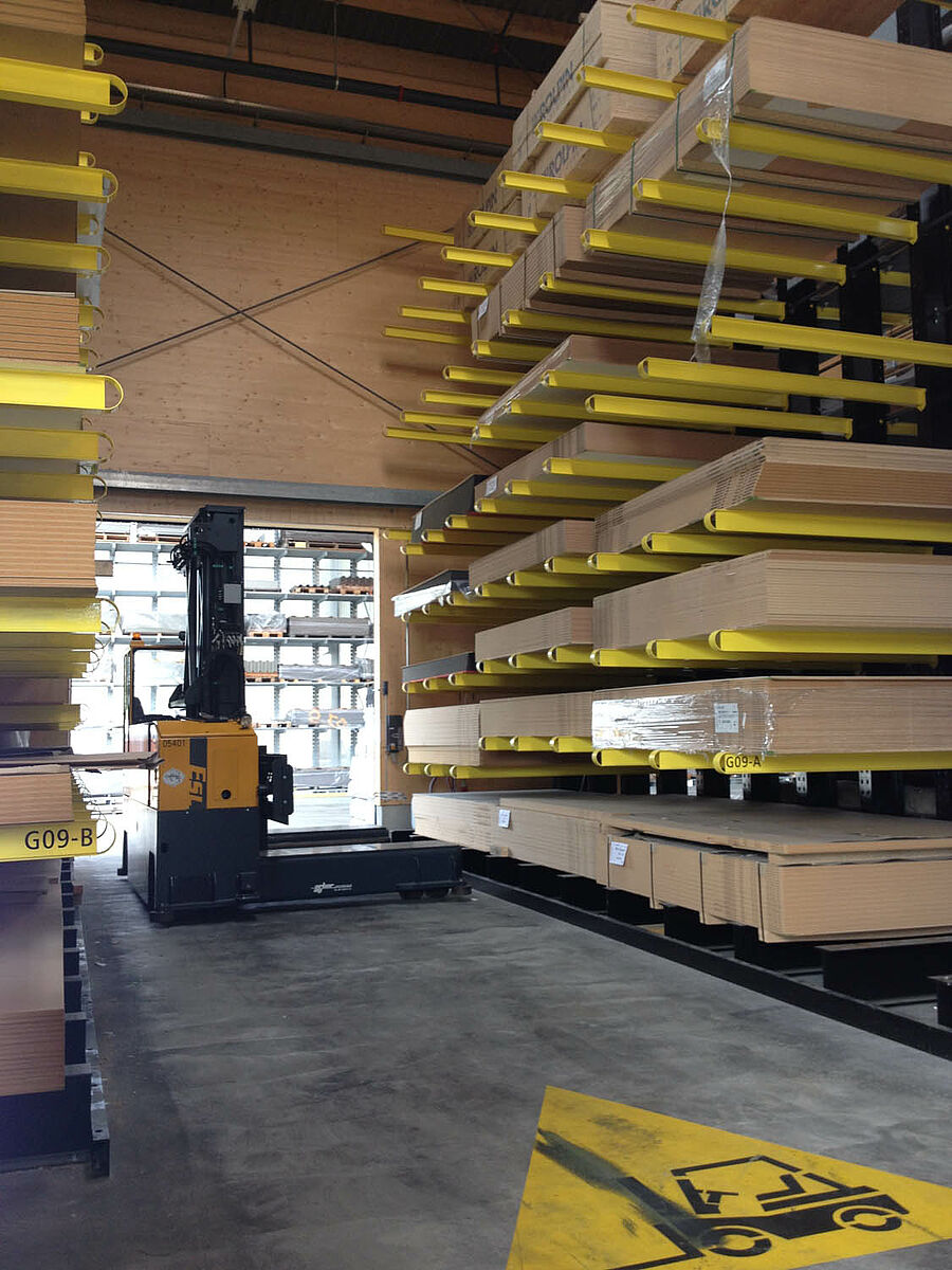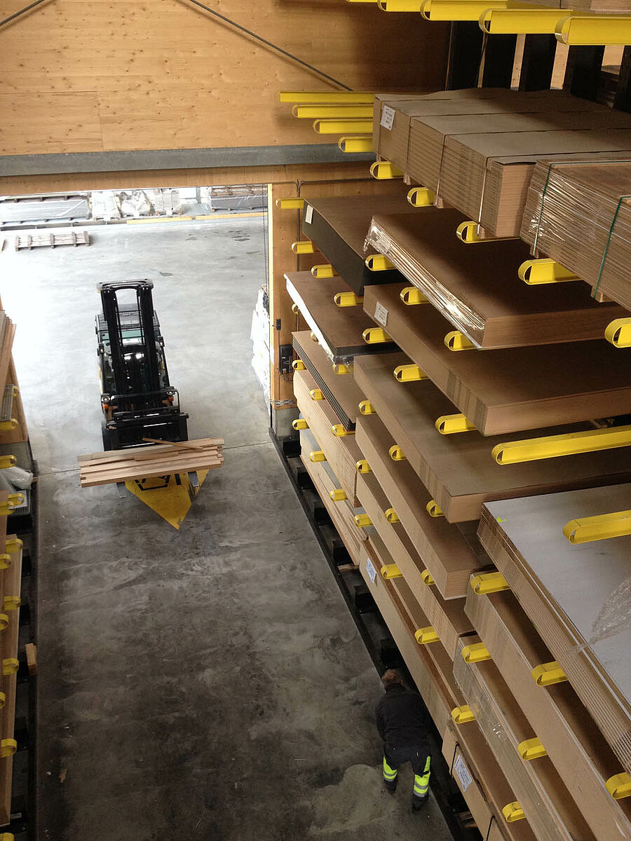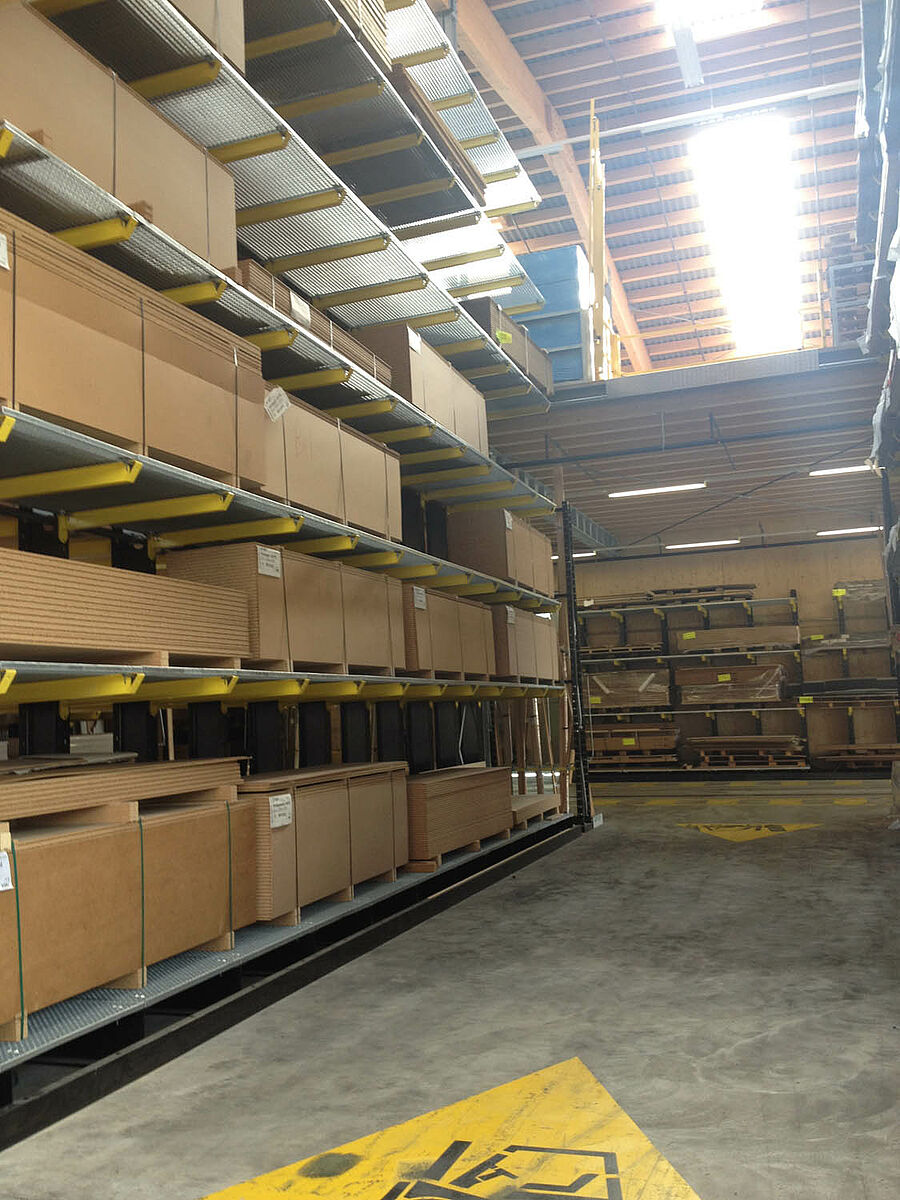 L'entrepôt de Bienne est réparti sur une superficie de 300 mètres carrés en deux zones de stockage traversant. Dans le hall, OHRA a monté près de 600 mètres de rayonnages à bras portants de 9 mètres de haut, avec six niveaux de stockage et des bras portants de 2,5 mètres de large, qui sont desservis par des chariots élévateurs à quatre voies. Les rayonnages verticaux en fin de rangées permettent également un stockage méthodique des barres, profilés et autres tuyaux et tubes. Les rayonnages à palettes et à bras portants en finition galvanisée à chaud pour l'extérieur peut accueillir 600 palettes supplémentaires. Pour le stockage des matériaux isolants, une mezzanine de 1000 mètres carrés est intégrée dans la construction du hall.