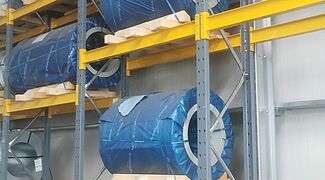 Les bobines de tôles métalliques (non ferreuses) les plus diverses sont le matériau de base à partir duquel Invesztál fabrique les formes et les types les plus variés de couvertures de toit et de systèmes de gouttières. Jusqu'à présent, l'entreprise les stockait au sol ou dans un rayonnage à palettes qui n'était pas idéal pour le stockage de bobines. Grâce aux nouveaux rayonnages à palettes pour charges lourdes sur mesure d'OHRA, l'entreprise a pu réduire les dommages causés aux bobines et utiliser efficacement l'espace disponible dans un nouvel entrepôt.