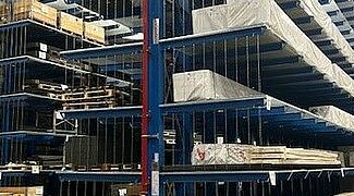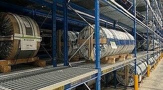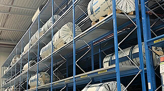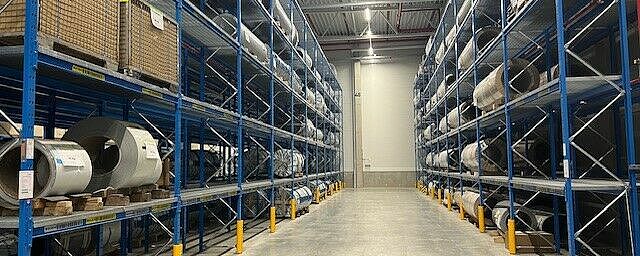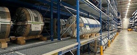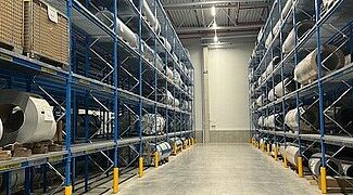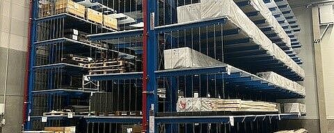Le mélange de rayonnages cantilever et de rayonnages à palettes permet de stocker des matériaux aussi divers que des adhésifs, des bobines d'aluminium et de PRV, des paquets de contreplaqué, des planchers en PVC ou des lattes de bois et de mousse de polyuréthane. L'un des avantages des rayonnages OHRA, construits à partir de profilés d'acier laminés à chaud, est leur grande capacité de charge : Chez Knaus Tabbert, les rayonnages cantilever supportent par exemple jusqu'à 12 tonnes par montant, la capacité de charge d'un seul cantilever peut atteindre 1 000 kilogrammes - même au niveau de stockage le plus élevé, à 7,5 mètres de hauteur. Les bobines de PRV pesant jusqu'à 1,2 tonne et les bobines de tôle pesant au maximum 1,8 tonne sont en revanche stockées dans des rayonnages à palettes. Les étagères grillagées permettent un stockage flexible indépendamment du format des supports de chargement des bobines. De même, dans les rayonnages cantilever, des étagères grillagées permettent de stocker les emballages et les supports de chargement les plus divers.