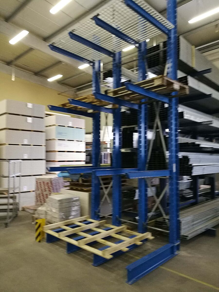 Pour le stockage peu encombrant des marchandises longues - par exemple des profilés de construction secs, Lambda a également installé différents rayonnages cantilever galvanisés d'OHRA dans l'espace extérieur. La hauteur des stands de 4240 ou 4840 millimètres permet également une bonne utilisation de la surface de sol disponible.