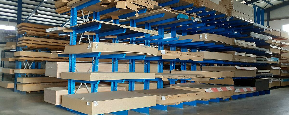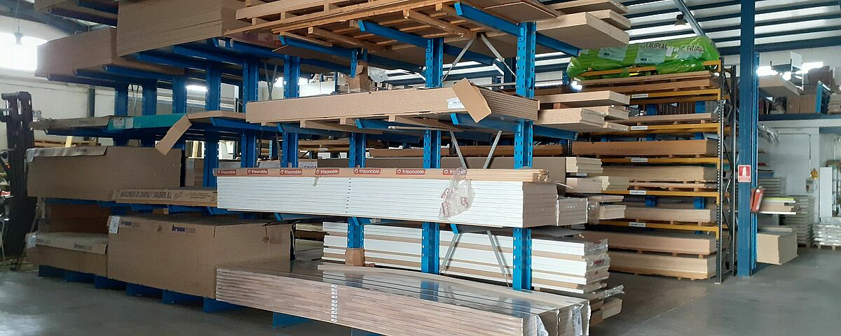 Grâce au nouveau système de rayonnage, OHRA a considérablement optimisé l’espace, notamment en adaptant une rangée de rayonnage à la quantité et aux dimensions de lots de panneaux de bois disponibles chez Maderas Fanega : en effet, l'entreprise stocke plus de 30 paquets de panneaux 2440 x 1220 mm, et 30 autres de 2850mm x 2100mm. Une installation non adaptée aurait occupé beaucoup d’espace, d’autant plus que le portefeuille d’articles ayant ces dimensions est limité. OHRA a donc équipé l’un des côtés de l’étagère avec un rayonnage de 1850 mm de long et l’autre côté avec un rayonnage de 1200 mm. Afin d'assurer la stabilité de l'étagère malgré cette asymétrie, les montants ont été surdimensionnés en conséquence.