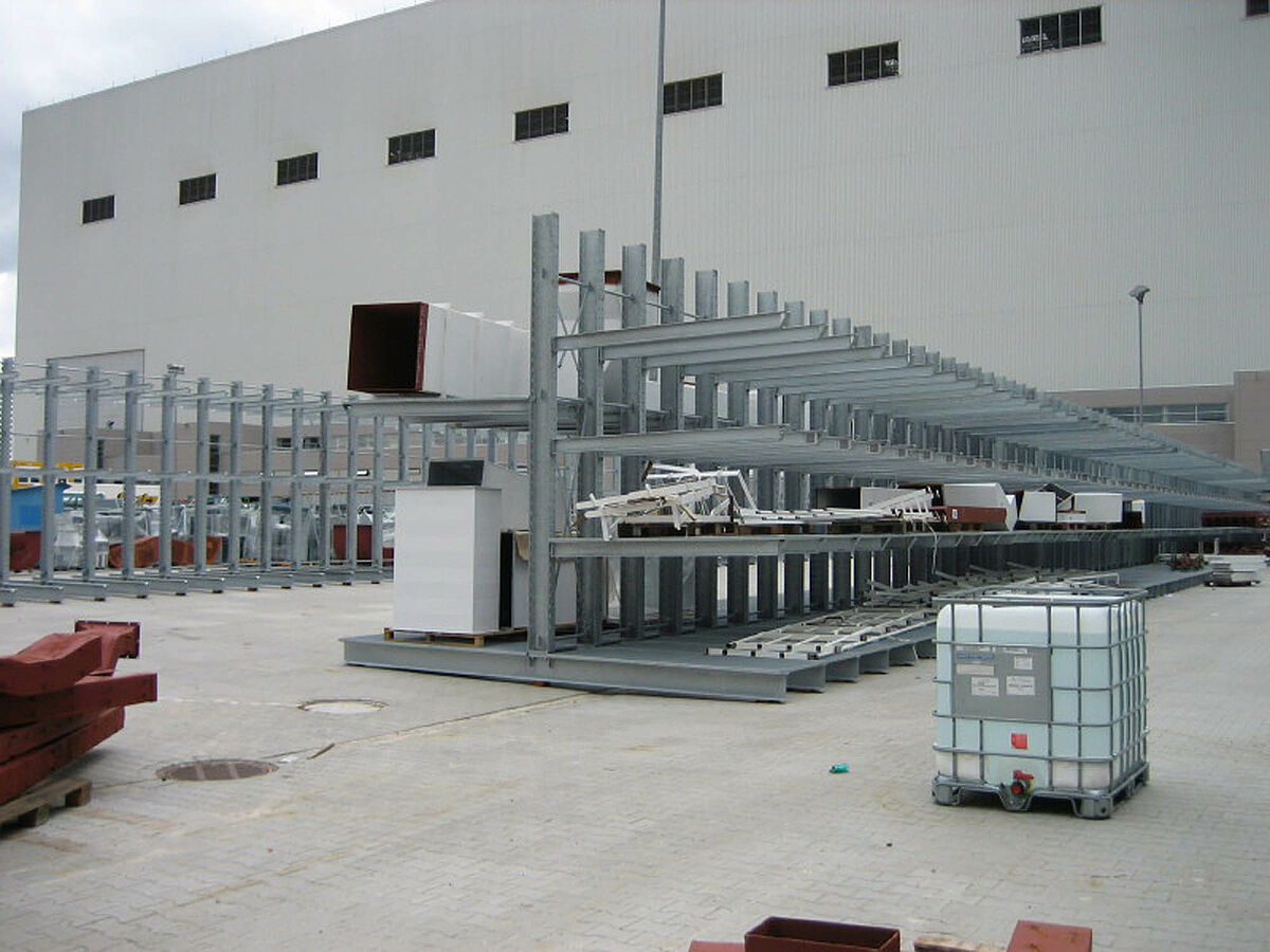 En raison des charges élevées et du manque de solidité du sol, une solution particulière a été trouvée : une construction qui se place sous les rayonnages et répartit les charges ponctuelles des supports des étagères sur une grande superficie de façon optimale. Pour une utilisation à l’extérieur, le rayonnage a été livré en modèle galvanisé à chaud et monté par des monteurs OHRA expérimentés conformément aux exigences du client.