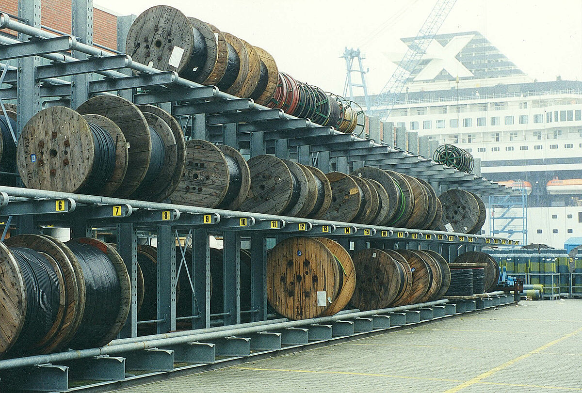 Notre service statique et construction a calculé sur la base du poids et du diamètre des tambours les dimensions idéales des tuyaux transversaux, qui sont fixés aux bras portants. Les tambours ne peuvent pas rouler des rayonnages et restent à leur place.