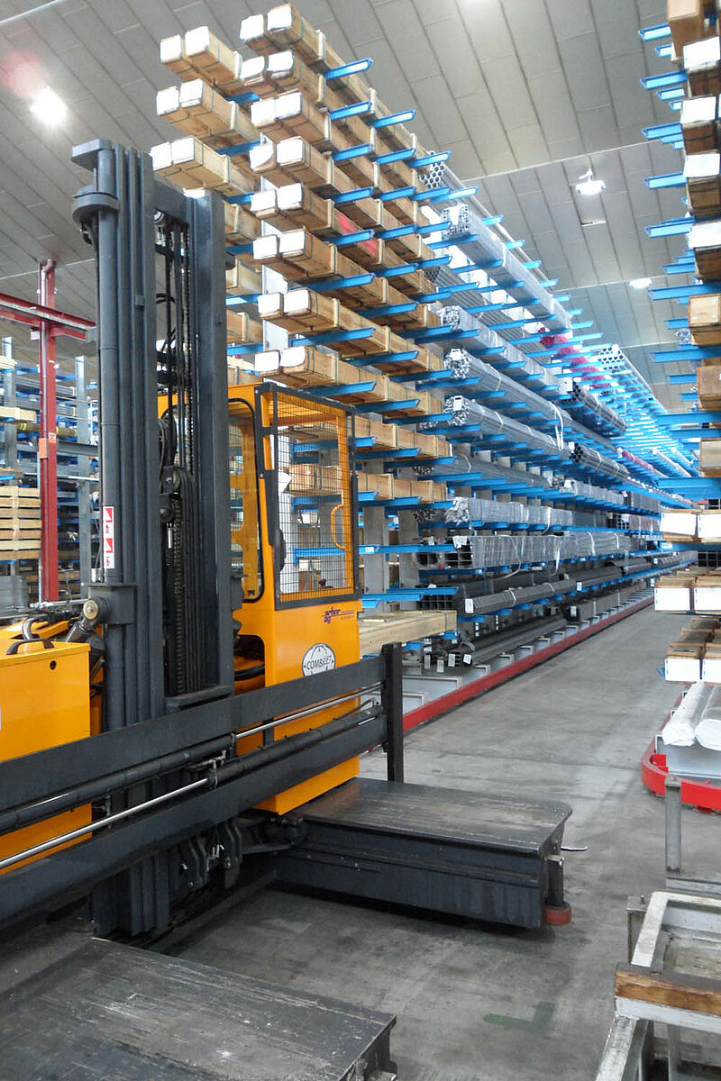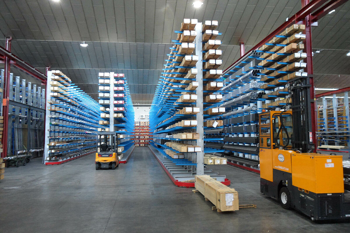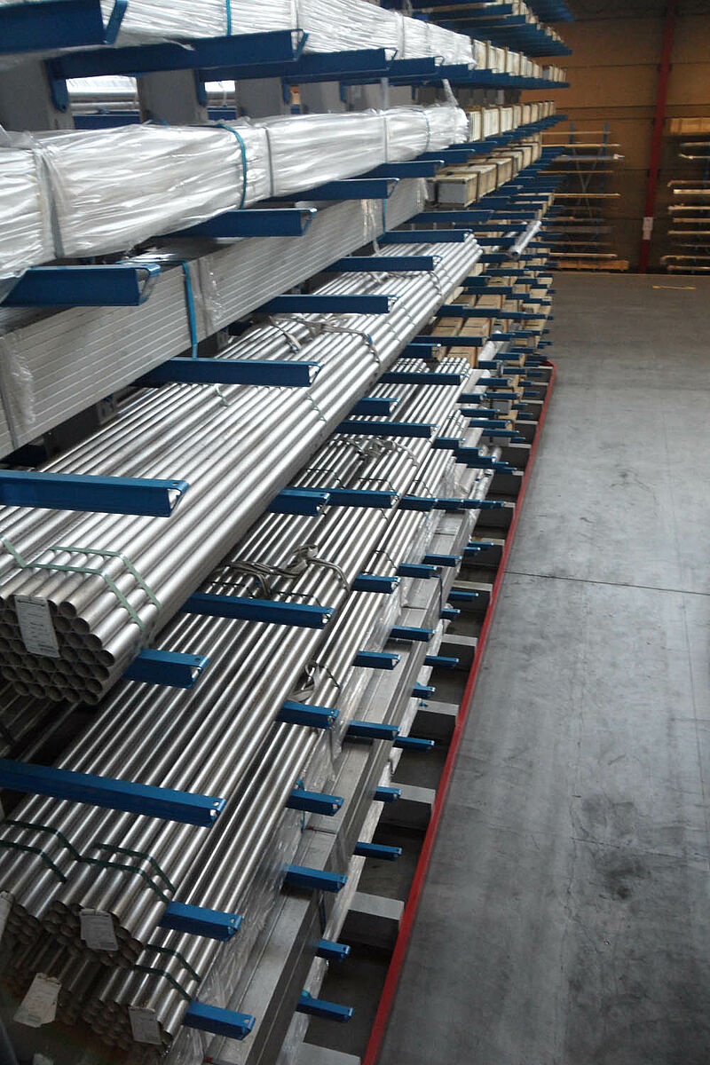 La société anonyme Notz Metall AG, l'un des négociants leaders suisses en acier inoxydable, a réalisé son nouvel entrepôt de marchandises avec les rayonnages à bras portants OHRA. Grâce à la construction à rayonnages en hauteur - le niveau supérieur maximal atteint une hauteur de 6,4 mètres - l'entreprise a pu accroître sa capacité de stockage sur une surface inférieure à celle de l'ancien système.
