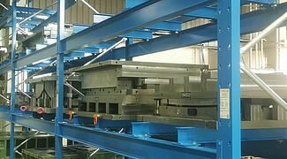 C'est précisément dans ce but que Solvaro a mis en place un entrepôt ultramoderne dans lequel les outils d'emboutissage sont stockés pour ses clients. Le nouveau rayonnage spécial a été conçu par OHRA de façon à ce que les emplacements dans le rayonnage puissent être conçus individuellement en fonction de la taille des outils. Chaque outil se voit ainsi attribuer son propre emplacement fixe, ce qui facilite l'accès. OHRA a installé au total deux rayonnages double profondeur et un rayonnage simple profondeur. Les rayonnages mesurent entre 9 et 11 mètres de long et 5,5 mètres de haut, les charges par compartiment sont comprises entre 6.000 et 7.000 kilogrammes.