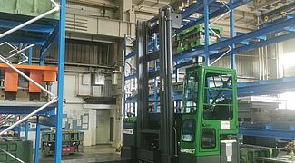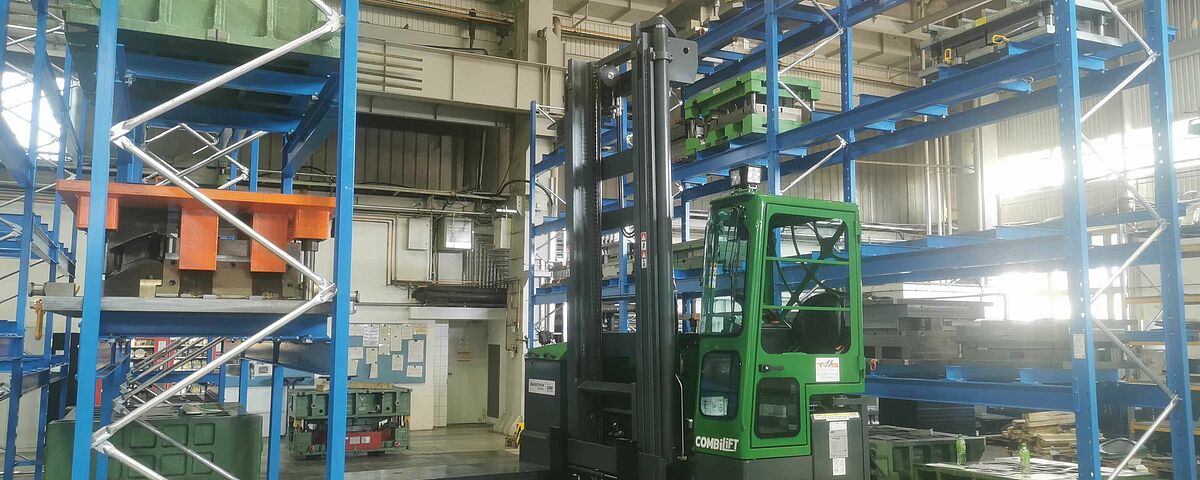 Comparé au stockage alternatif au sol, le nouveau système de rayonnage permet à Solvaro de stocker beaucoup plus d'outils d'emboutissage sur la surface disponible. Mais ce qui est plus important, c'est l'accès direct et rapide à chaque outil : Un chariot élévateur spécial de chez Combilift, acheté spécialement pour les outils d'emboutissage, peut facilement soulever les outils lourds depuis le rayonnage et les amener directement à la presse d'emboutissage. D’autre part, l'outil d'emboutissage est protégé à tout moment contre les dommages grâce à la construction sur mesure du rayonnage.