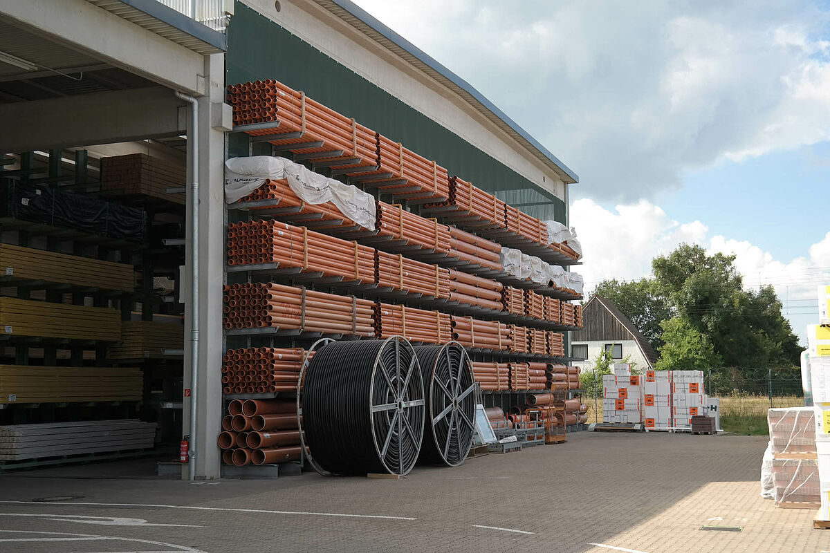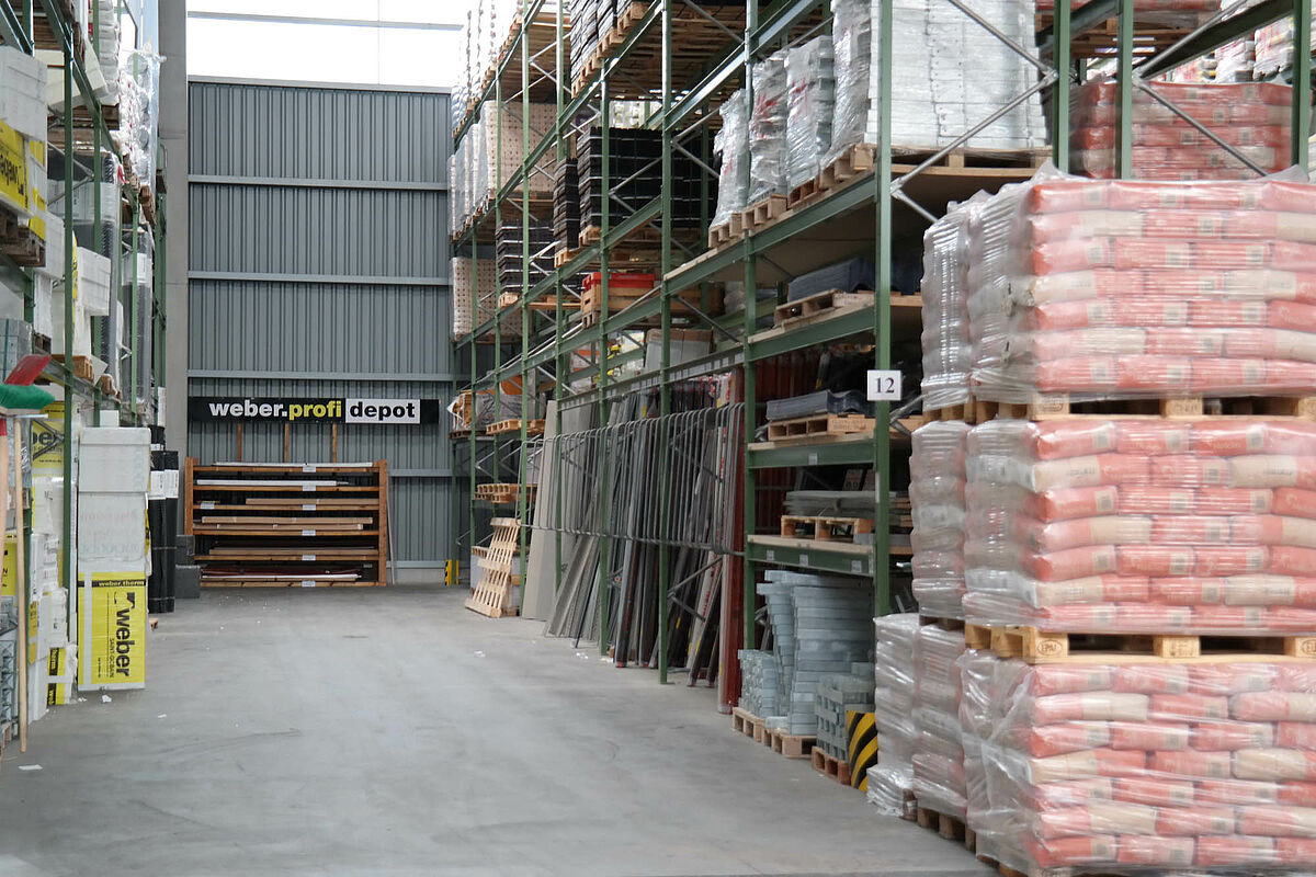 C’est pourquoi la société team baucenter décida d’optimiser ses processus de stockage en faisant appel à un nouvel entrepôt : plus spacieux, ce dernier permet de stocker une plus large gamme de marchandises et de regrouper la gamme de produits entière à un seul et même endroit ; caractéristique indispensable pour parvenir à une préparation des commandes, sans avoir à parcourir de longues distances. Mais ce n'est pas tout : en plus des capacités de stockage accrues, la marchandise est désormais stockée, chargée et déchargée des camions à l’abri des intempéries.