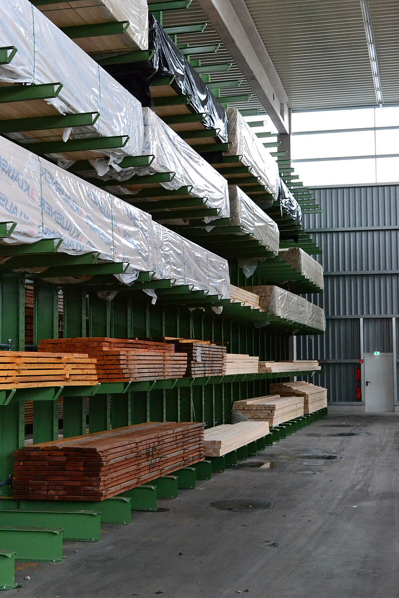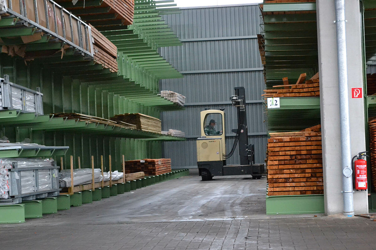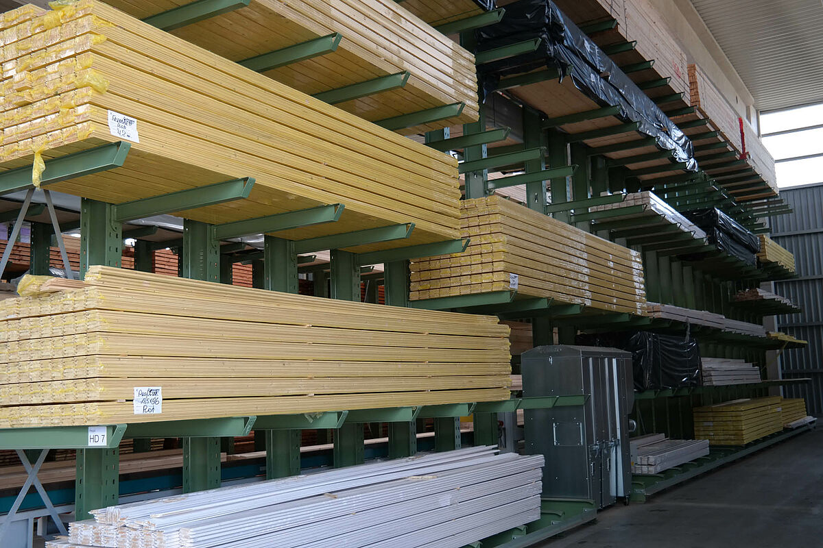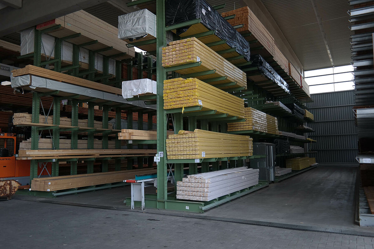 Jusqu’à ce jour, l’entreprise stockait ses matériaux de construction dans un entrepôt partiellement recouvert. Des produits en bois d’une longueur allant jusqu’à 13 mètres devaient par ailleurs être stockés à l’extérieur sur un rayonnage prévu à cet effet. Réduites, les capacités de stockage de la partie abritée ne permettaient pas de protéger entièrement le bois alors exposé aux intempéries. Le stockage en bloc de la marchandise ne permettait pas de manipuler les produits sans les endommager.