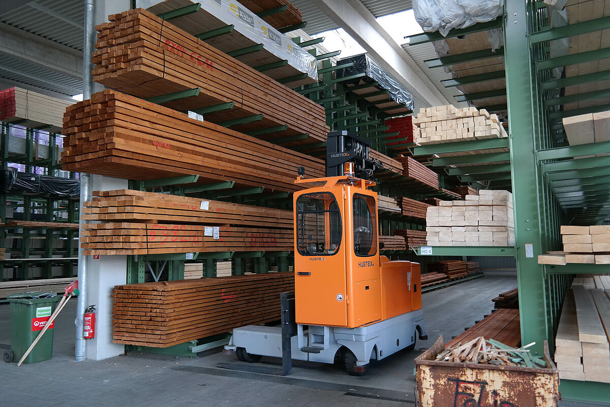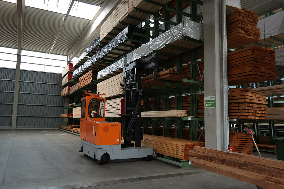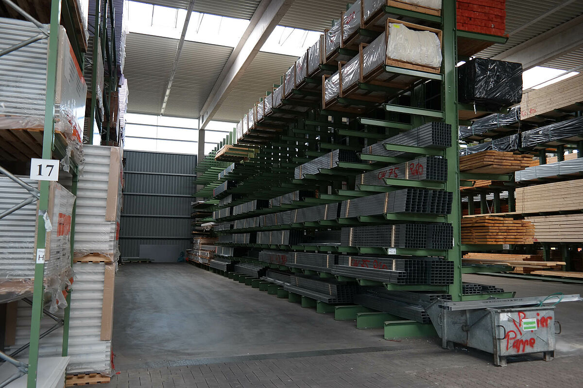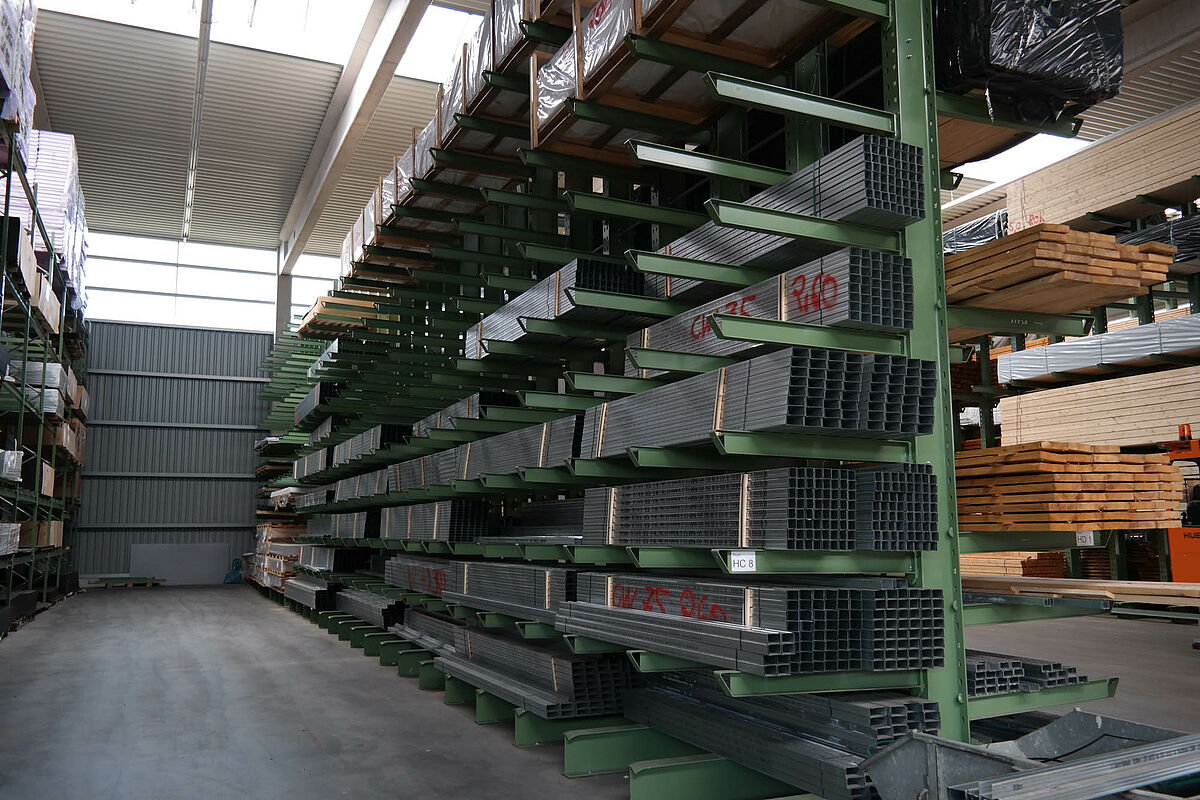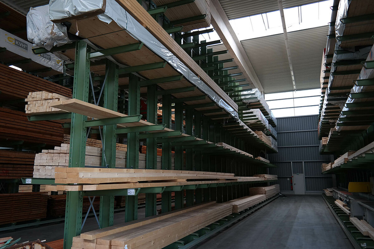 Jusqu’à ce jour, l’entreprise stockait ses matériaux de construction dans un entrepôt partiellement recouvert. Des produits en bois d’une longueur allant jusqu’à 13 mètres devaient par ailleurs être stockés à l’extérieur sur un rayonnage prévu à cet effet. Réduites, les capacités de stockage de la partie abritée ne permettaient pas de protéger entièrement le bois alors exposé aux intempéries. Le stockage en bloc de la marchandise ne permettait pas de manipuler les produits sans les endommager.