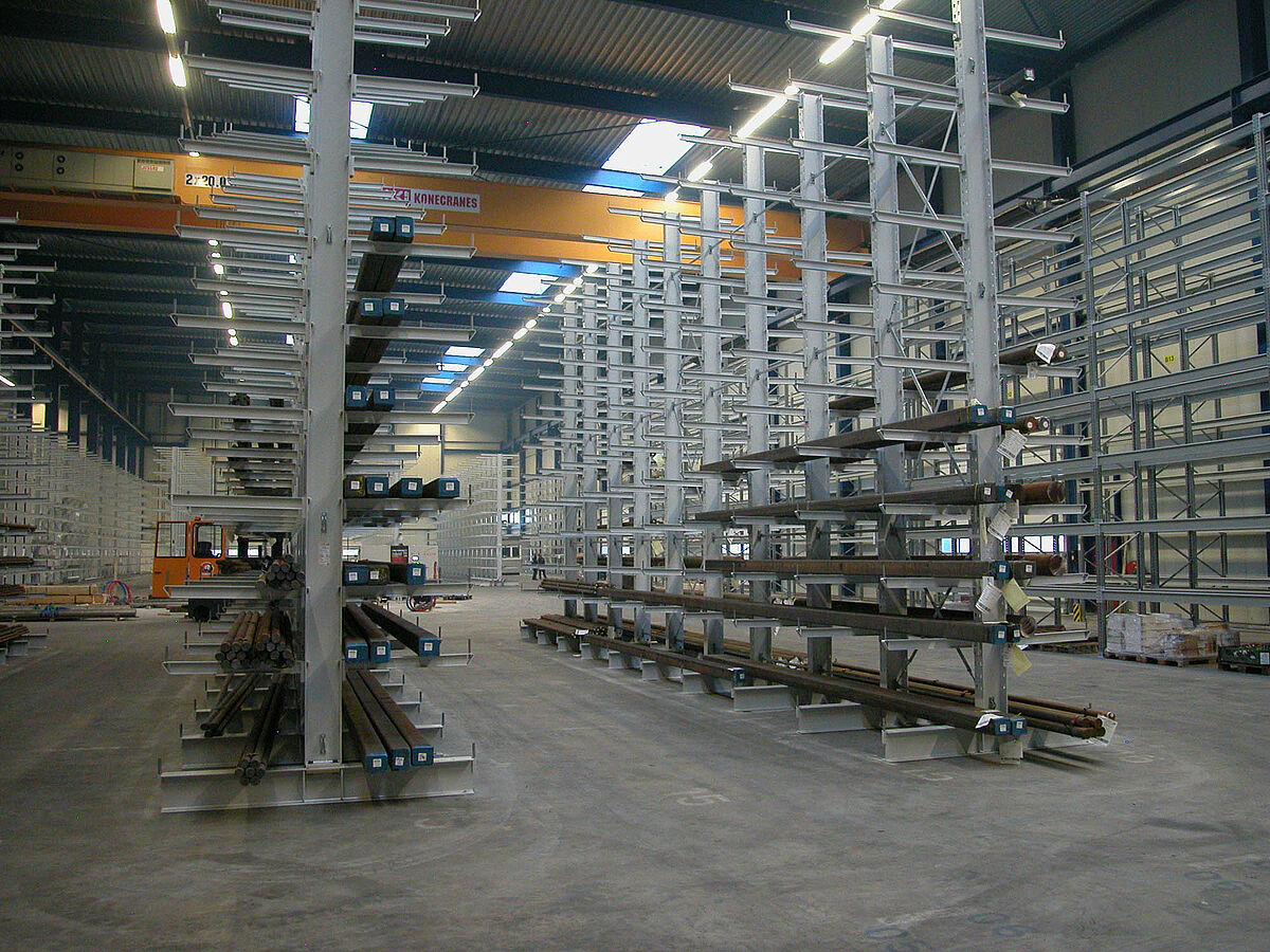 Le stockage d'acier et de produits métallurgiques lourds pose à l'entreprise des contraintes particulières. L'accès sélectif sur différentes dimensions de marchandise, un flux de matière optimal ainsi que la préparation rapide des commandes client doivent être synchronisés et garantis à tout moment.