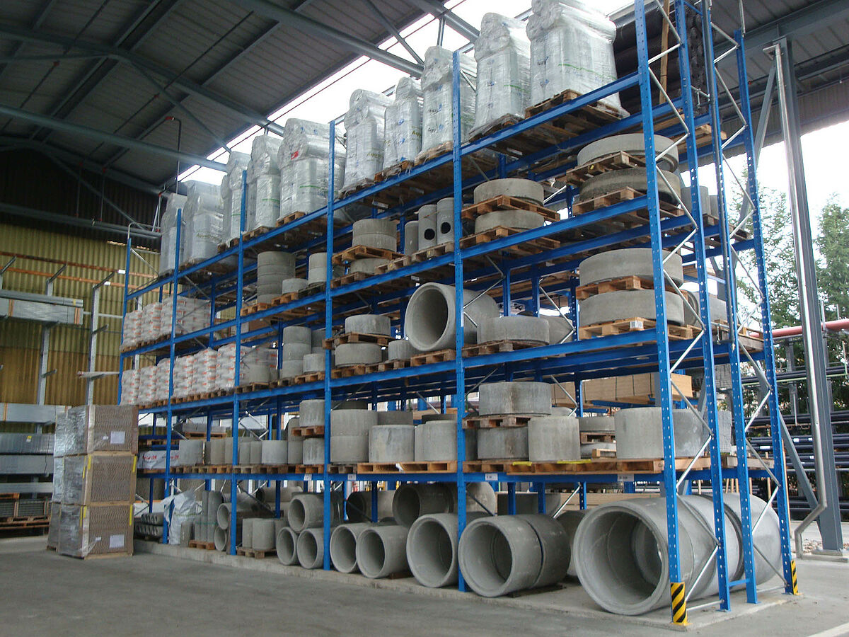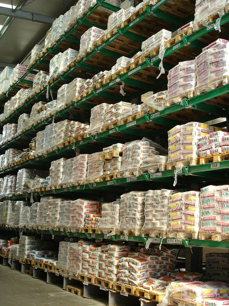 Le rayonnage à palettes OHRA P3 a été développé spécifiquement pour le secteur des matériaux de construction pour stocker de manière sûre les énormes charges de briques, éléments préfabriqués en béton ou des sacs de ciment.