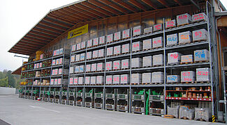 Les rayonnages à palettes avec toiture sont une spécialité d’OHRA. Il n'y a pas de meilleure solution pour le stockage extérieur des marchandises sensibles aux intempéries. Les rayonnages OHRA couverts sont particulièrement adaptés pour les magasins spécialisés proposant un assortiment de jardinerie ou pour le commerce de matériaux de construction qui peuvent entreposer les éléments préfabriqués en béton, les matériaux en sacs palettisés ou éléments de construction en bois à l’extérieur.