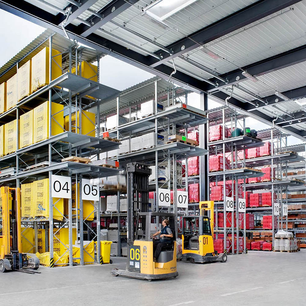 - Particulièrement adaptés pour le stockage de matériaux de construction, de palettes de matières premières et de composants de machine